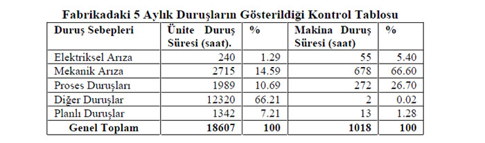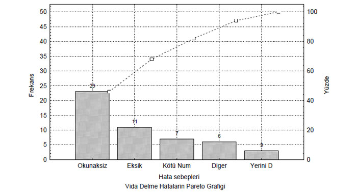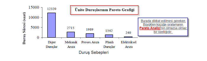 Burada ünite ve makine için 2 ayrı Pareto geçekleştirilebilir ve ikisine etki eden olumsuzluklar ayrı ayrı incelenebilir.
